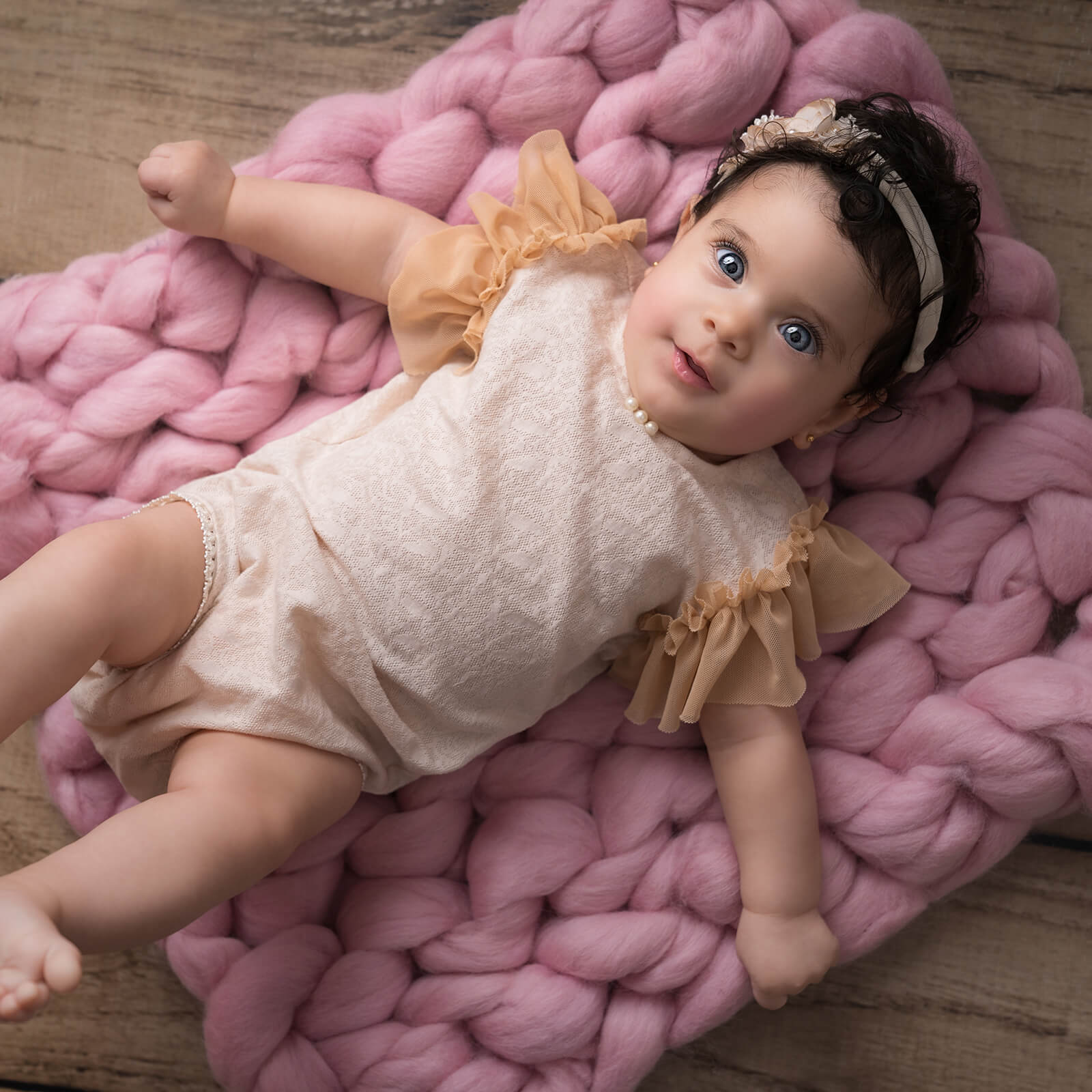 Hay dos etapas bien marcadas para aprovechar a retratar. Una es entre los 4 y 6 meses aproximadamente que es cuando lo bebes aun no se sientan pero estando boca abajo levantan la cabecita y la otra es estando boca arriba se agarran los piecitos. Son dos poses adorables para hacerles fotos, ademas suelen mirar a la cámara y sonríen un montón!