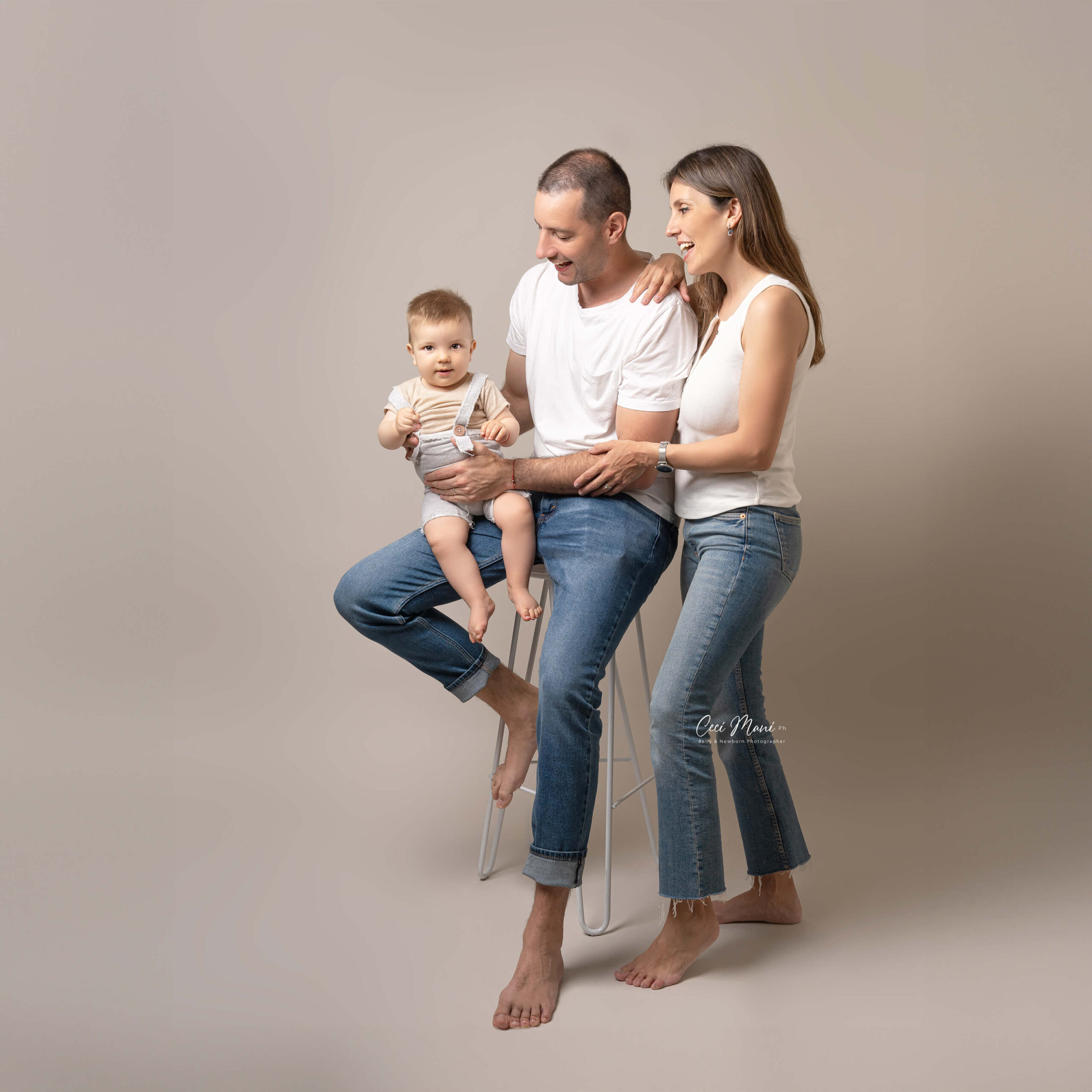 Para las fotos juntos, pueden traer remera o camisa blanca, negra, beige o gris. Lo importante es que sea lisa, sin marcas grandes ni dibujos, y que sea igual o muy similar a la que use el papá y hermanitos.